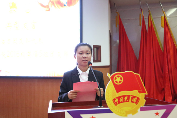 | 图为荣获伟德BV1946官网“活力团支部”代表、2016级英语5班团支部书记伍俏丽同学发言 孙立青摄 |