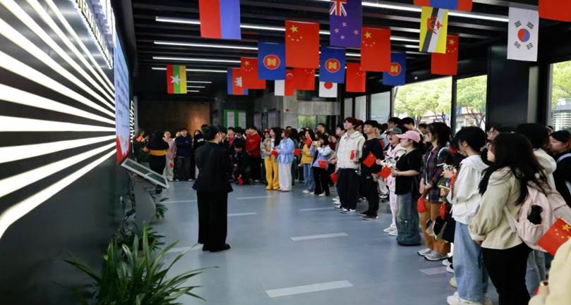 4月27日上午,同学们来到怀化国际陆港及其展厅。在这里,同学们看到了各种进出口货物展品和发往东南亚国家的列车,对国际贸易和跨境物流有了更直观的感受。同学们还积极向讲解员提问,深入了解国际贸易在全球经济中的重要地位、未来发展趋势,以及商务英语专业在国际贸易中的就业机会和职业发展方向。