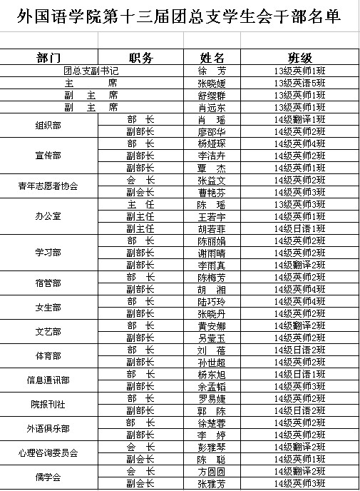 伟德BV1946官网第十三届团总支员工会干部名单