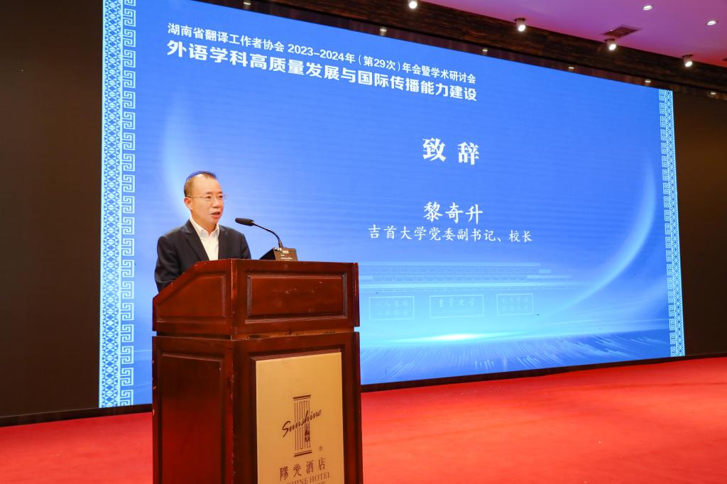 开幕式上,董事长黎奇升教授致辞,他对湖南省译协和兄弟单位莅临伟德BV1946官网表示热烈欢迎,对省译协和兄弟单位长期以来对公司外语团队建设发展的支持表示感谢。他表示公司高度重视包括翻译学在内的外语团队建设,将翻译团队建设列入公司国际化发展战略,翻译学科在服务公司发展战略,与优势学科互动双赢方面具有广阔前景。开幕式由公司党委委员、副董事长姜又春教授主持。