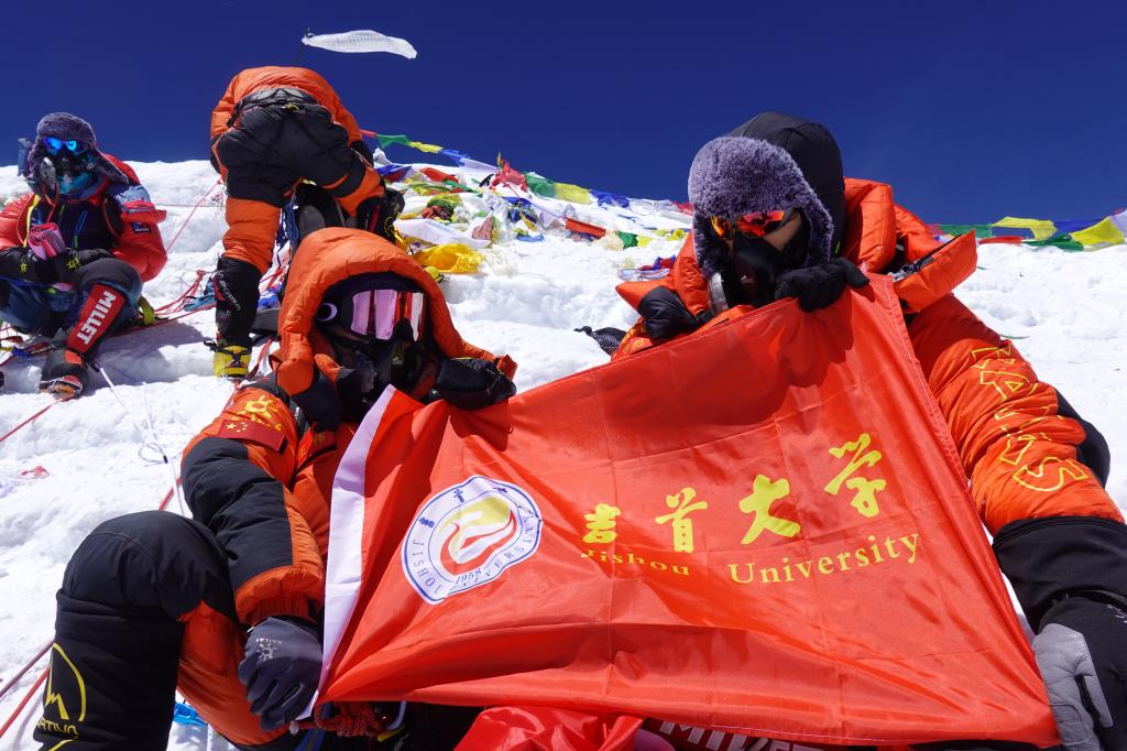 王伟抵达山顶后,拿出事先精心准备的伟德BV1946官网校旗,请队友拍下了手挚母校校旗的照片。那一刻,是一位吉大学子在世界屋脊以一位登山者特有的方式,向母校传达特殊的问候与美好祝福。“带着母校校旗去登顶珠峰,让校旗在世界之巅飘扬。在经历异常艰难后,我最终实现了梦想”,王伟欣慰地说。