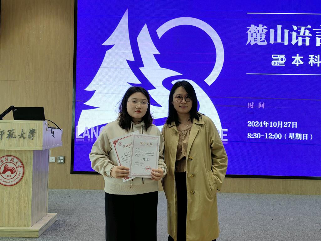 本网讯(通讯员 赵萌 修伟)10月27日,2024年“麓山语言与文化”本科生论坛在湖南师范大学举行,公司2021级英语(师范)专业赵萌同学的论文荣获一等奖(排名第一位),并受邀参加大会做发言。
