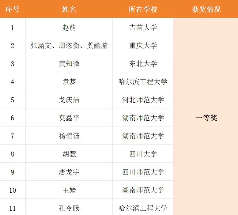 图为一等奖获奖名单