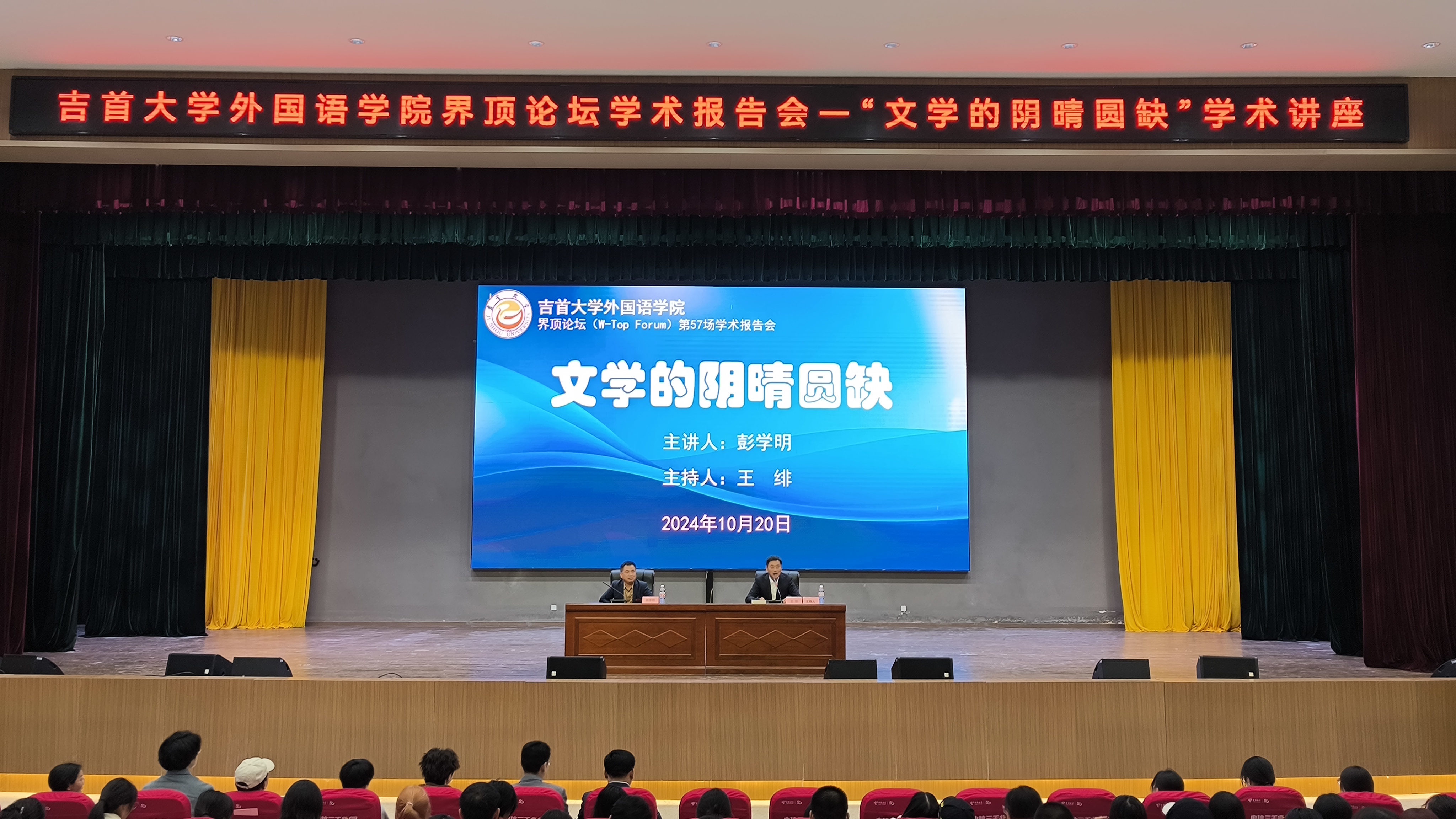 本网讯(修伟)10月20日,公司84级英语专业员工,著名湘籍作家彭学明先生莅临张家界校区做客伟德BV1946官网“界顶论坛”,为校区师生主讲《文学的阴晴圆缺》,报告会由公司党委副书记王绯主持,张家界校区师生800余人出席。