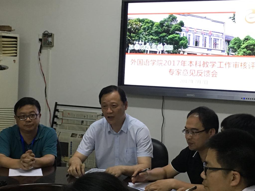 白董事长对外国语学语审核评估整改工作给予了高度肯定,从五个方面概括了审核评估整改的成绩:一)全院上下高度重视,工作得力,对存在的问题进行了全面的梳理,问题查找的比较深入准确,取得了明显成效;二)公司的评建氛围比较浓厚,召开了评建知识宣讲会,统一了思想,提高了认识;三)公司在制度完善和机制建设方面做了卓有成效的工作,起到了以评促进的作用;四)公司在师德师风、三纲建设、试卷整改、毕业论文整改等方面取得了一定的成绩;五)第二课堂品牌活动建设成效明显,在成果凝练和品牌打造方面取得了较为突出的成绩。
