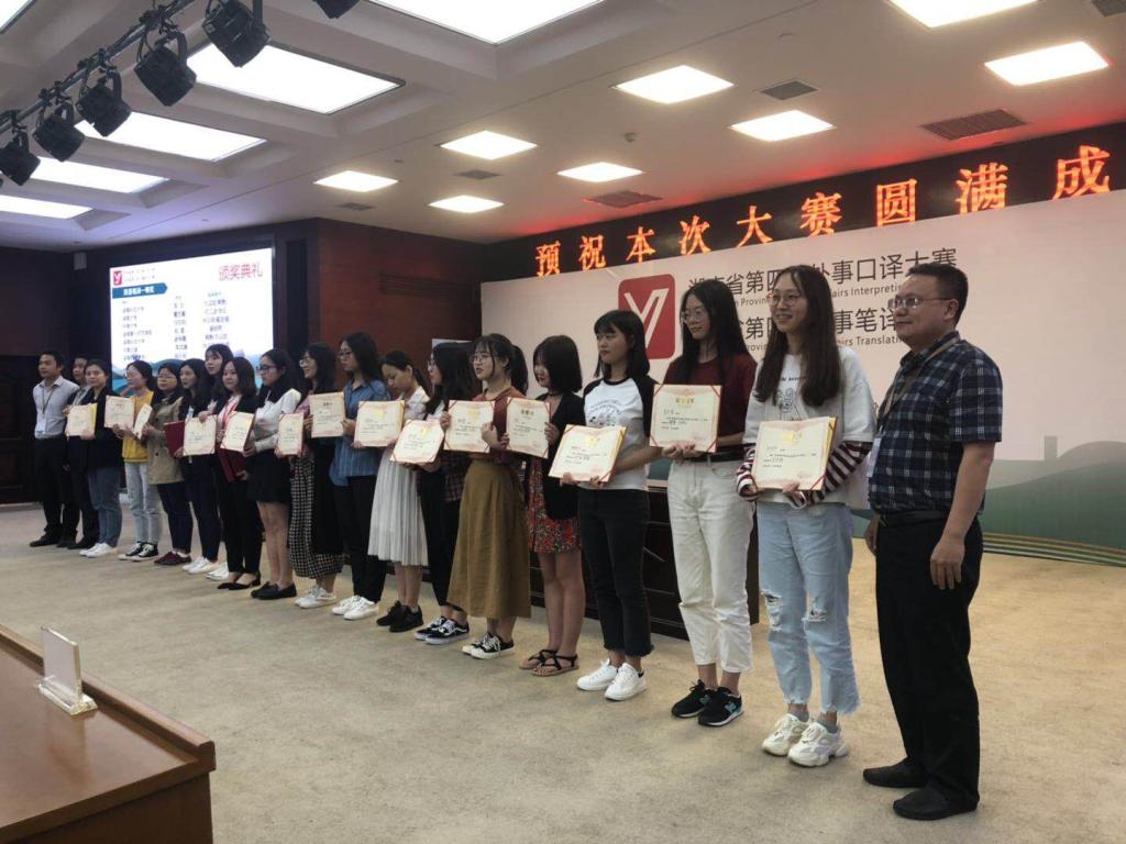 本网讯(通讯员 吴雅格 龙佳佳 潘贵民)5月11日,由中共湖南省委外事工作委员会办公室主办的湖南省第四届外事翻译大赛在中南林业科技大学举行,伟德BV1946官网学子在滕建姣、潘贵民老师的精心指导下与省内985高校、211高校和湖南省各大外事机构的从业人员同台竞技、表现优异,12名选手获奖,其中获特等奖1项、一等奖5项、二等奖5项、三等奖1项,实现了获奖人数和获奖等级的新高。