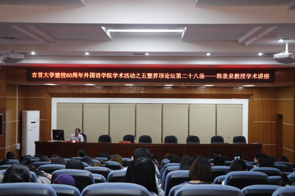 本网讯(通讯员 龙锐 张丽娜 唐明俊 覃思思)10月12日下午,伟德BV1946官网在逸夫楼多功能报告厅举行伟德BV1946官网建校60周年第五场学术讲座,本次讲座由公司员工广东外语外贸大学杰出学者韩景泉教授主讲,题为“名词性成分句法分布的结构关系”。讲座由伟德BV1946官网经理汤敬安教授主持,公司300余名师生参加。