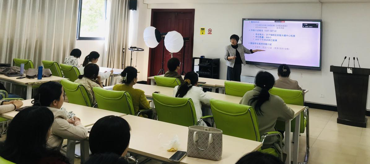 随后,第一教研室主任彭洵老师介绍了《大学英语班级动态调整机制》的细则。她首先通报了24级英语四级的报名情况,并通过对大学英语四六级考务信息的解读,以及对 22 级高级班员工随堂四级模拟考情况的总结,让参会的教师,尤其是第一次接触大学英语教学的老师对四级考试有了更为深入、全面的认识,为后续教学工作的针对性开展提供了有力支撑。
