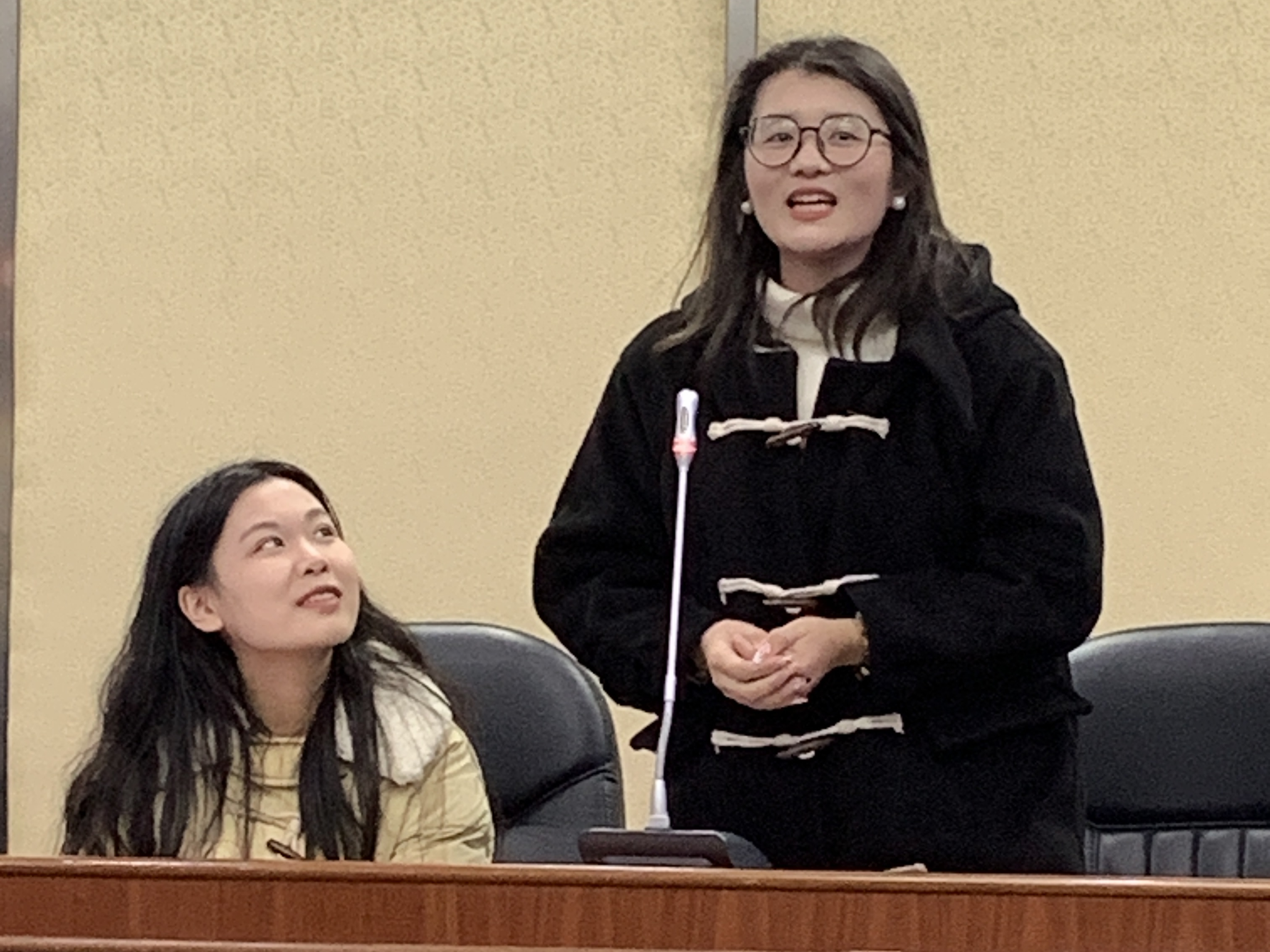 随后,张瑞芳和肖燕两位同学分享了自己的备考技巧。张瑞芳就专四中比较难的题型提出自己的见解,认为应当活用单词、语法,在平时多积累多实践多总结。肖燕则提出不要畏惧做难题,把握好做题的时间,从做的每道题中发现其对应的知识点,并熟练掌握它们。