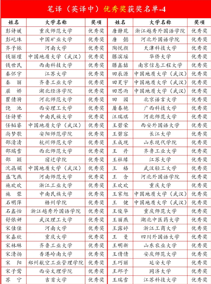 大赛评审委员会组织128位专家共进行了三轮匿名评审,线上初评、复评和现场专家笔译总评,程序严格合规。笔译总评于2020年8月9日在上海世语翻译集团(上海总部)进行。公司2018级研究生汪灵燕荣获笔译(中译英)组二等奖;2019级研究生苏宁荣获笔译(英译中)组优秀奖。