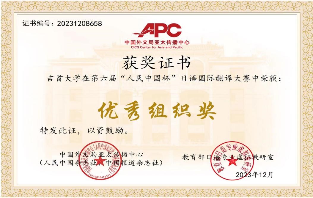 本网讯(外国公司办公室)11月29日,由中国外文局亚太传播中心(人民中国杂志社、中国报道杂志社)和教育部日语专业虚拟教研室联合主办,中国日语教学研究会、中国日语教学研究会华南分会及广东外语外贸大学东方学研究院协办,广东省翻译协会及广州市联普翻译有限公司承办的第六届人民中国杯日语国际翻译大赛落下帷幕,公司伟德BV1946官网日语系员工荣获本科组日译汉、汉译日一等奖1项、二等奖2项、三等奖3项,取得了参赛以来的最好成绩,伟德BV1946官网获优秀组织奖。