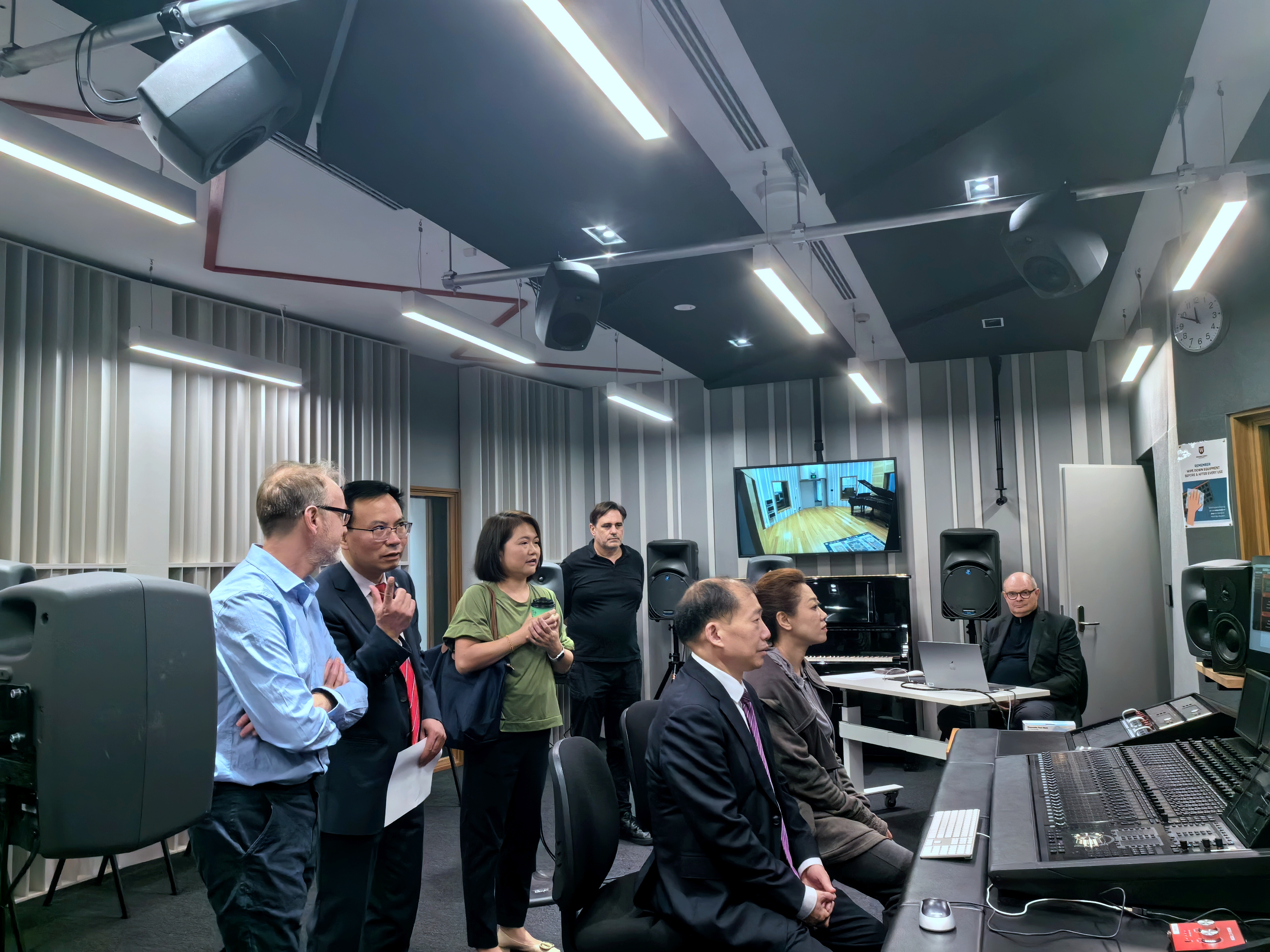 图为廖志坤一行参观西悉尼大学音乐实验室