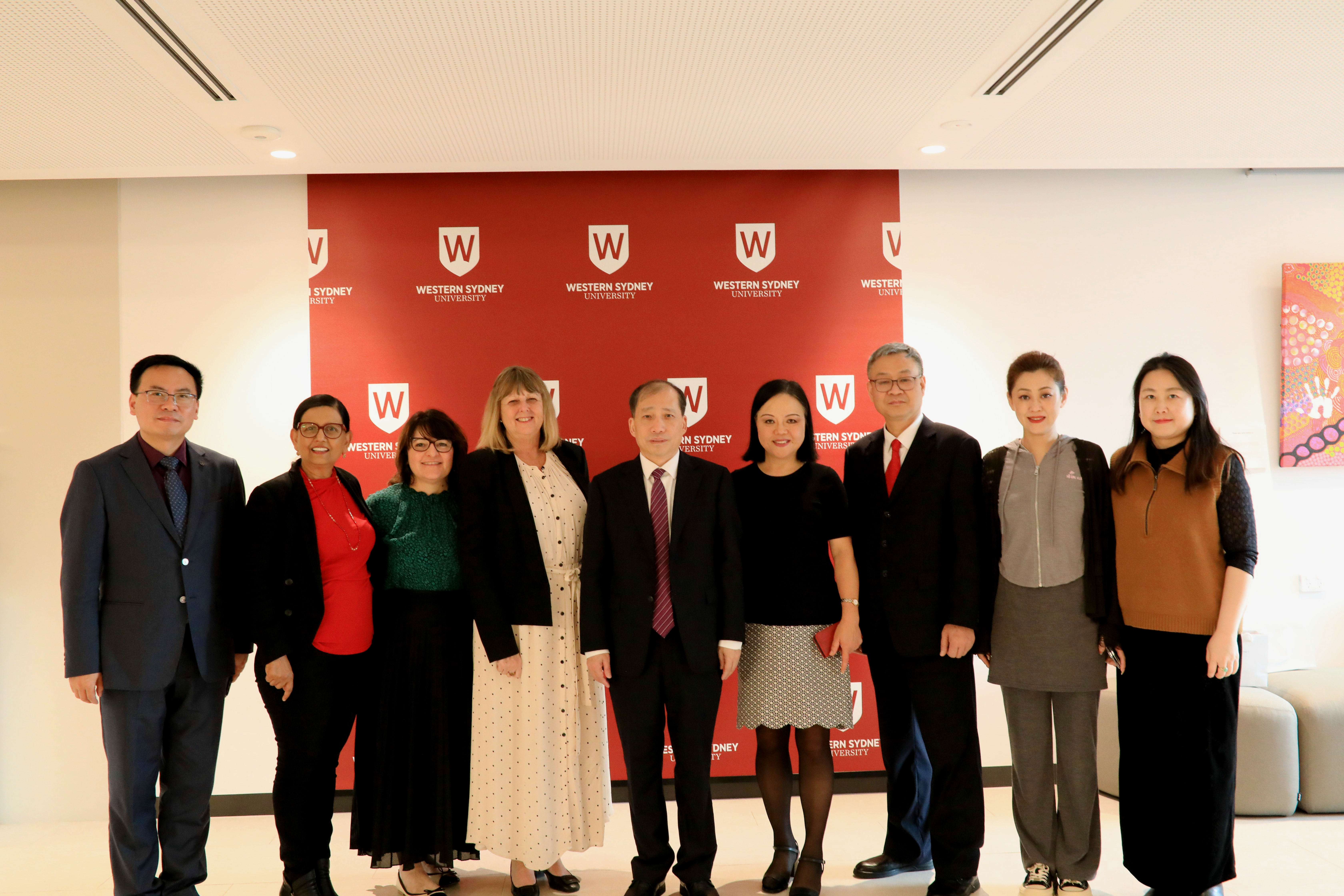 4月16日,廖志坤一行来到西悉尼大学帕拉玛特南校区,与该校常务副董事长黛博拉·斯威尼、副董事长乔宾、澳中文化艺术交流公司经理韩静等进行了会谈。廖志坤回顾两校的合作历史与成果,介绍伟德BV1946官网相关情况,表达了加强文化交流、国际传播创新人才培养等方面合作的期待。双方就两校员工互派、学分互认、教师互访、专业互办、课题共研等合作议题进行深入交流,并签订两校合作备忘录。会后,廖志坤一行还考察了澳中文化艺术交流公司,就人文艺术人才创新培养模式、经验进行交流。