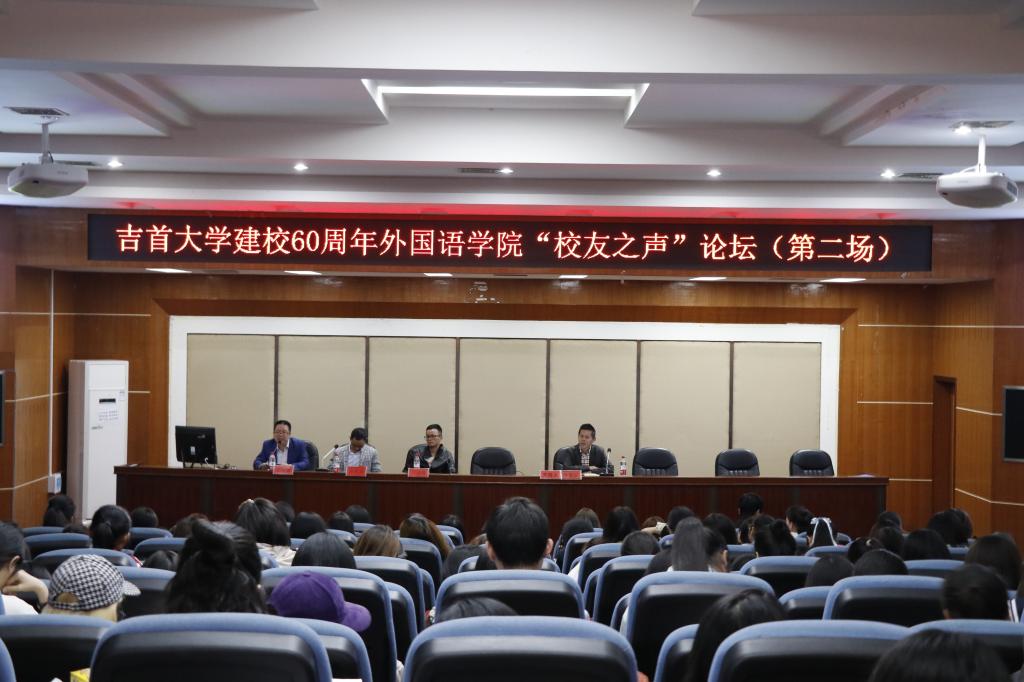 讲座伊始,汤敬安首先对三位员工的到来表示欢迎。首先,由王隆国员工发言,在发言中他结合自己十几年的工作经验向同学们提出几点建议:拥有信心,努力学习,不断提高自己;从多方面学习知识,不拘泥于课本,不断充实自己;参与社会实践,提升适应能力。此外,王隆国对于创业也提出自己的看法:创业需要具备敏锐的市场观察能力,时刻注意理念的创新,学会分享,及时与同伴交流新想法。随后,由陈雪亮分享自己的经历,在分享的过程中他重点强调---全面应用语言。他表示,语言不仅是日后工作中的一种工具,也是贯穿语言学习者全部生活的一部分,语言学习者应当在生活中灵活运用自己所学习的各种语言。同时,陈雪亮鼓励在场的同学对未来就业需要提前做好规划,明确自己的定位。紧接着,许英俊员工利用一段英语电影的节选视频表达观点。他表示,在以后的生活中,做人要有原则,做事情要坚守准则。在论坛尾声,许英俊为同学们献上了一首原创歌曲,歌词诙谐幽默,音乐轻松欢快,得到在场同学的一致好评。