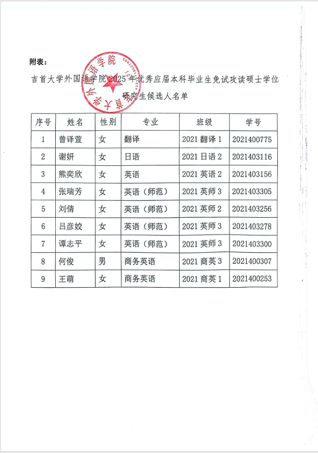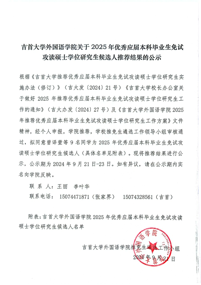伟德BV1946官网关于2025年优秀应届本科毕业生免试攻读硕士学位研究生候选人推荐结果公示