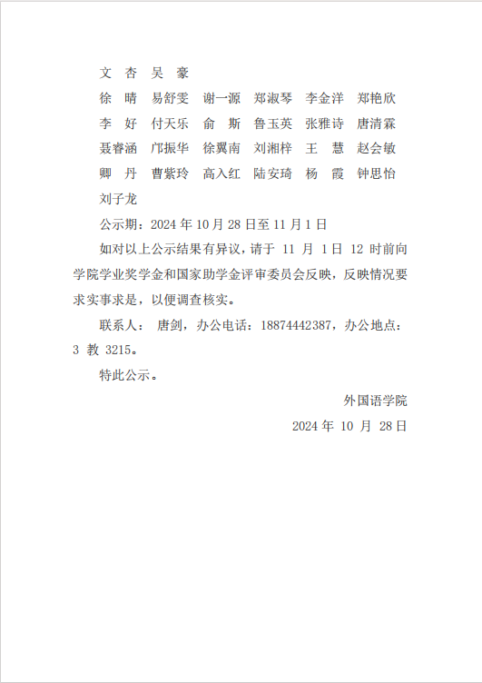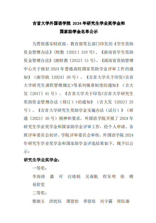 2024年研究生学业奖学金和国家助学金名单公示